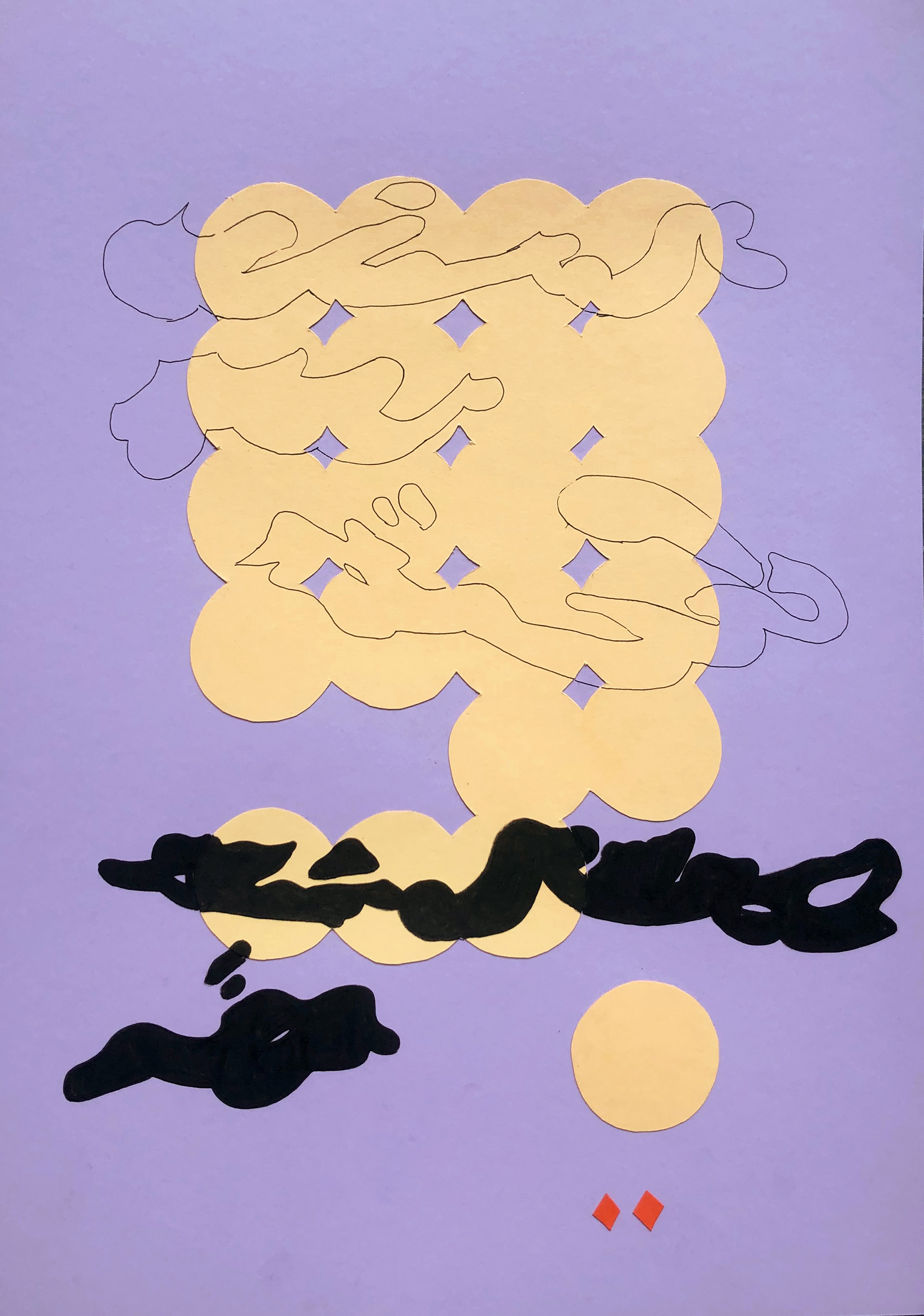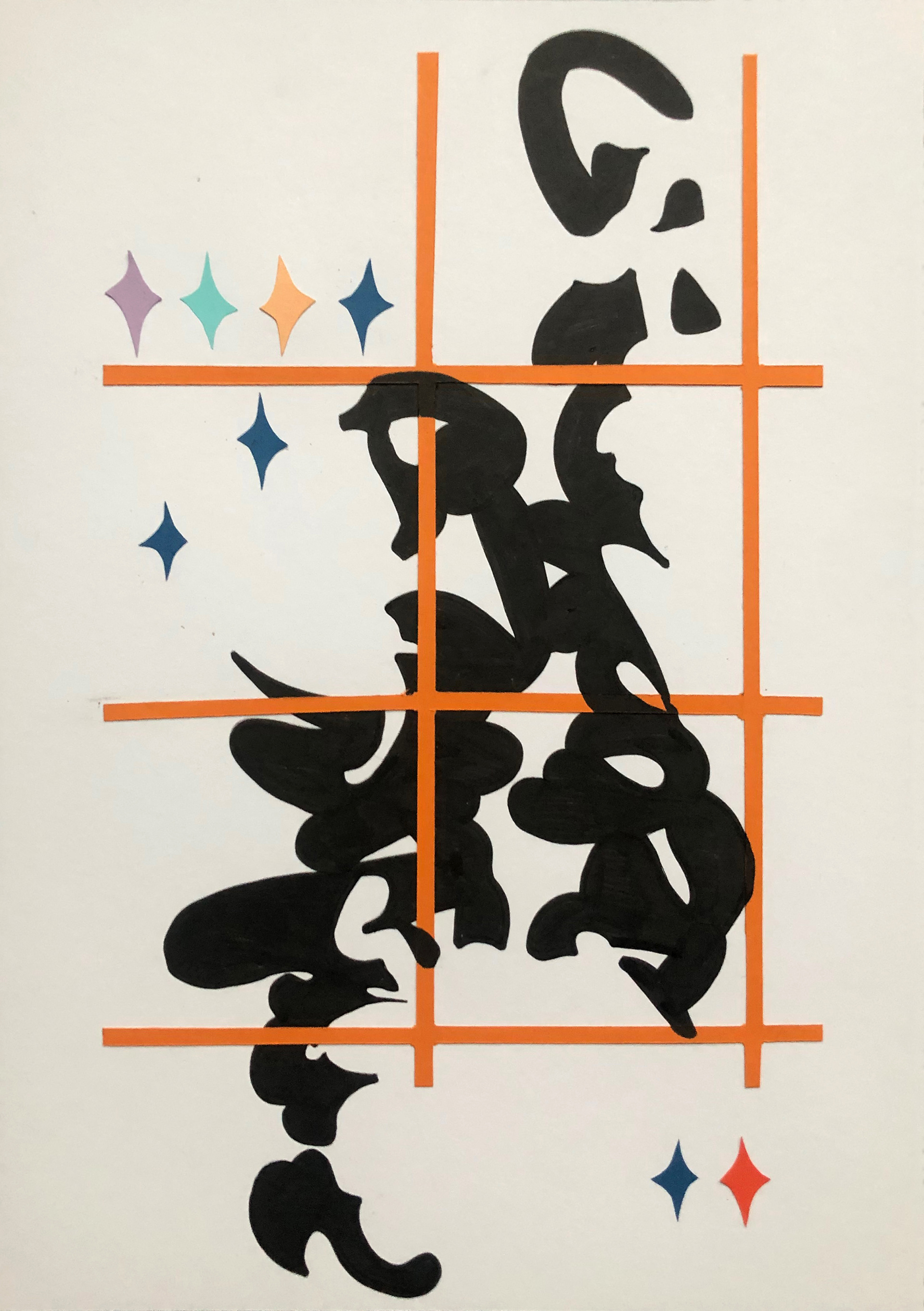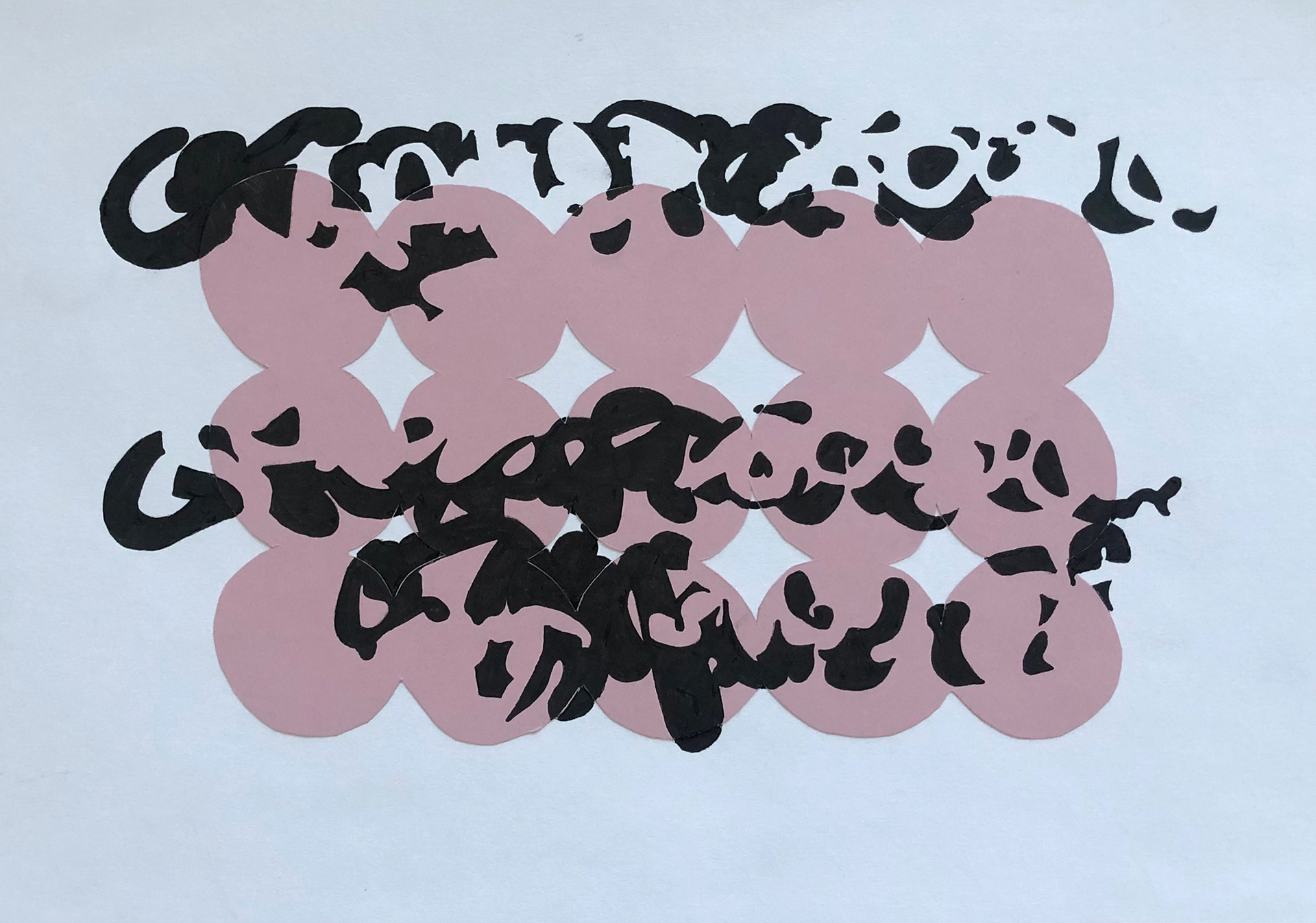 Series of paper collages and drawings from Spring 2025. The series combines different shapes, colorcombinations with writing systems.