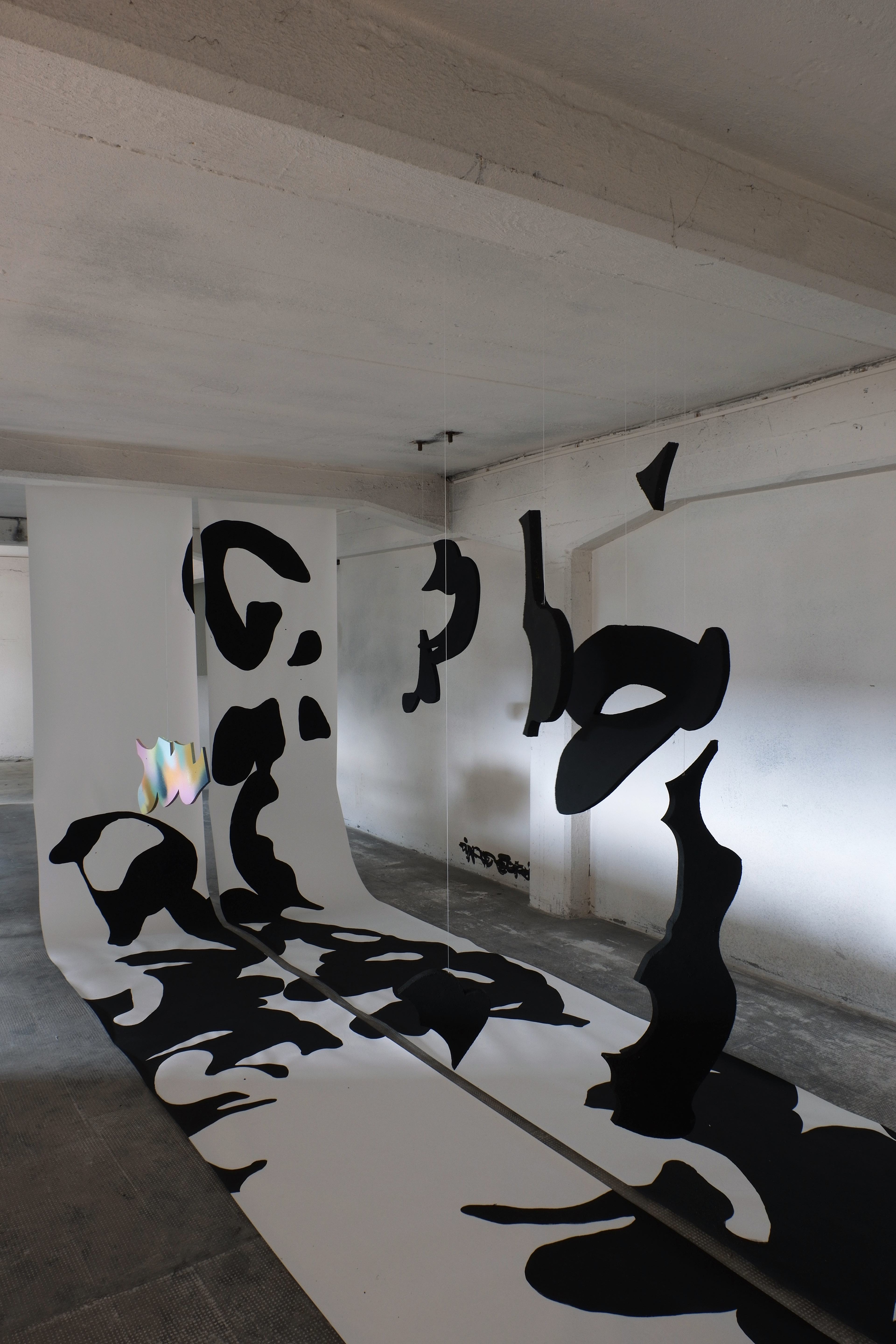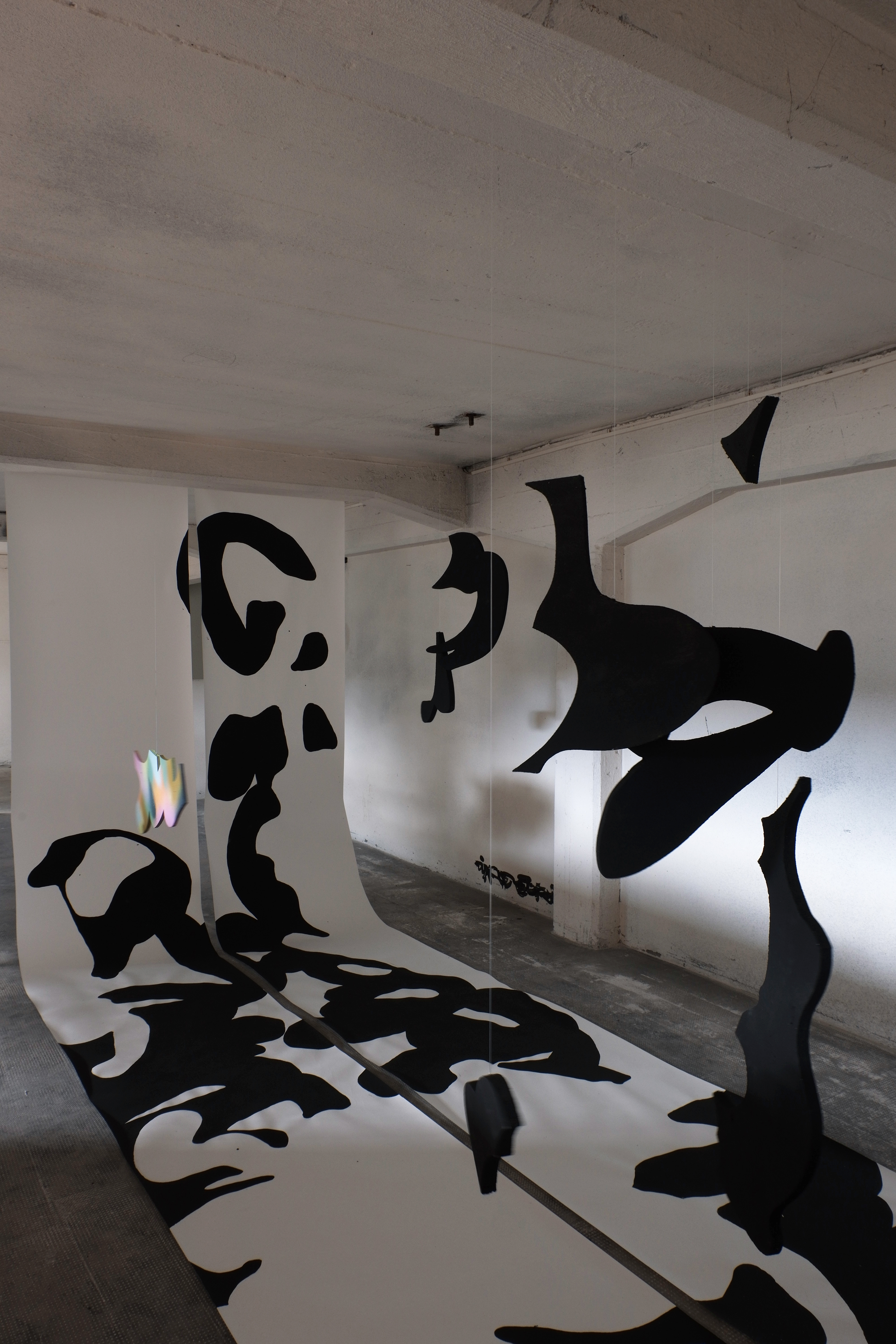 to work on a large scale in one room, using lettering on rolls of wallpaper, and to